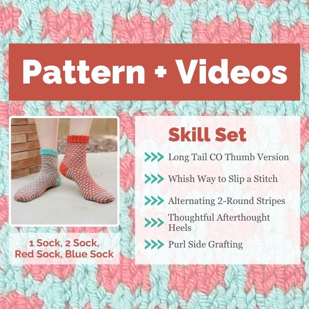 Bundle and Save! We've combined the 1 Sock, 2 Sock, Red Sock, Blue Sock Pattern with our ad-free video series to help you knit with confidence and keep a little extra jingle in your pocket.