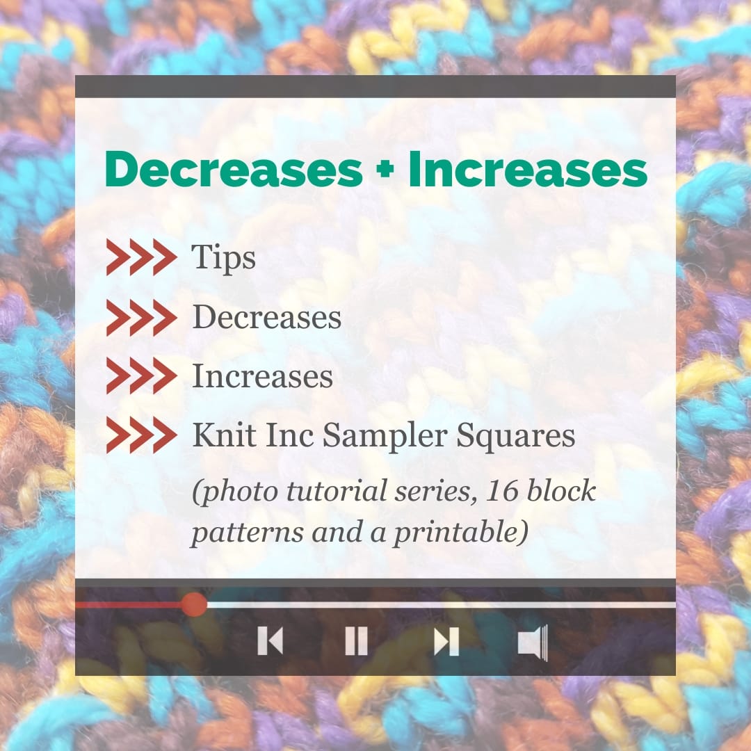 It's time to shape up your knitting with over an hour of video instruction demonstrating a variety of left and right slanting decreases. Also included is our Knit Inc Sampler Squares photo tutorial series with block patterns so you can compare the look of 16 different increases side by side.