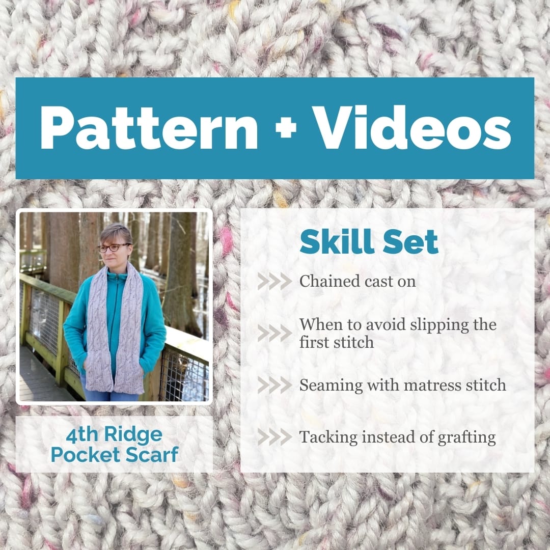 Bundle and Save! We've combined the 4th Ridge Pocket Scarf Pattern with our ad-free video series to help you knit with confidence and keep a little extra jingle in your pocket.