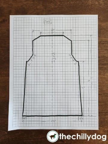 Since I have each piece sketched to scale, I could count the total number of squares to find the area, but that would require a lot of counting. It will be quicker to calculate the area. I'll demonstrate the process with my sweater back.