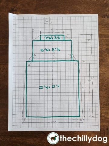 I'll break it down into simpler parts. First I draw 3 large rectangles inside my sweater back and note their width and height.
