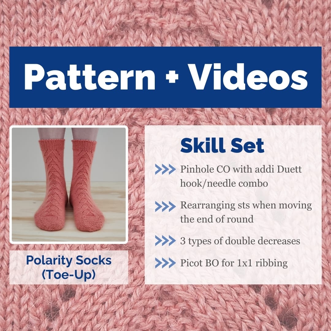 Bundle and Save! We've combined the Polarity Socks Pattern with our ad-free video series to help you knit with confidence and keep a little extra jingle in your pocket.