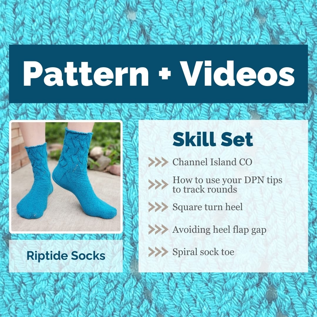 Bundle and Save! We've combined the Riptide Socks Pattern with our ad-free video series to help you knit with confidence and keep a little extra jingle in your pocket.