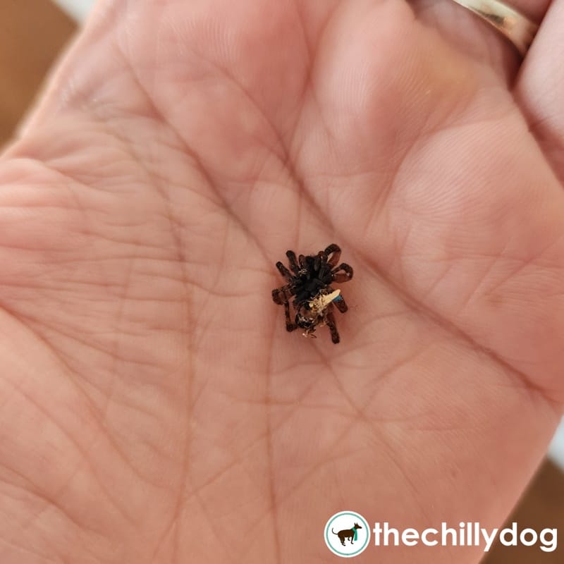 Anyone who works with yarn and fiber knows that it's not unusual to find a bit of fluff or string on the floor. That's what I was expecting when I bent over to pick up this little bit. Surprise! It was a dead spider, not fluff. 😝