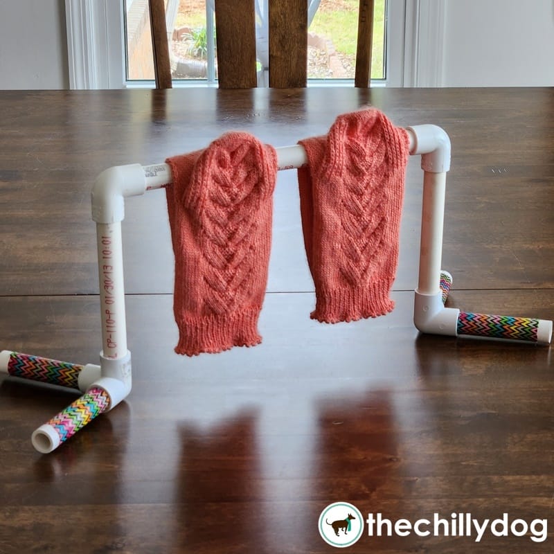 Since I didn't feel like lugging out my big drying rack for one pair of socks, I made this little cutie with some leftover bits of PVC.