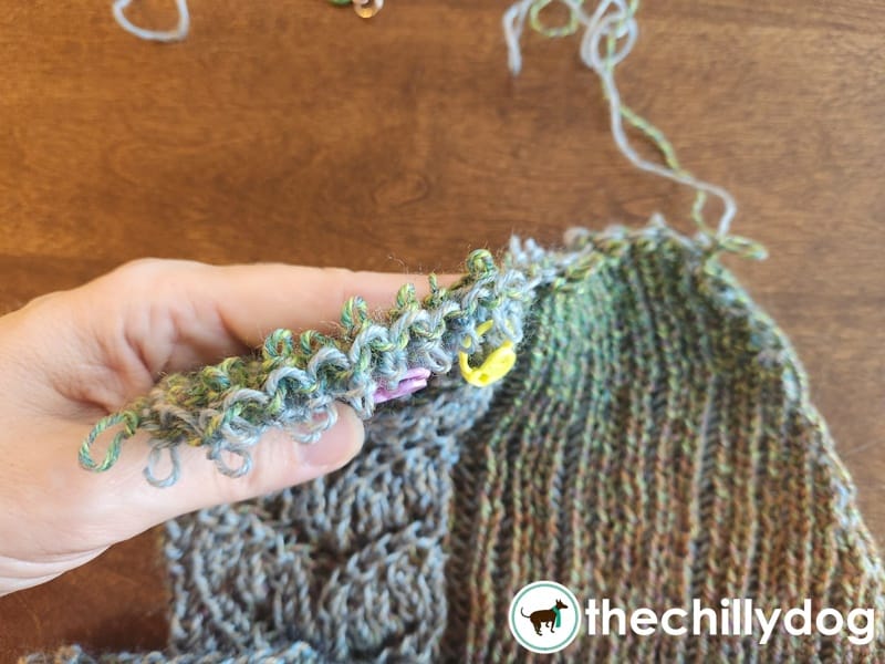 After removing the markers it was time for some surgery. I picked up the first two stitches with my project needles and then remembered a better option.